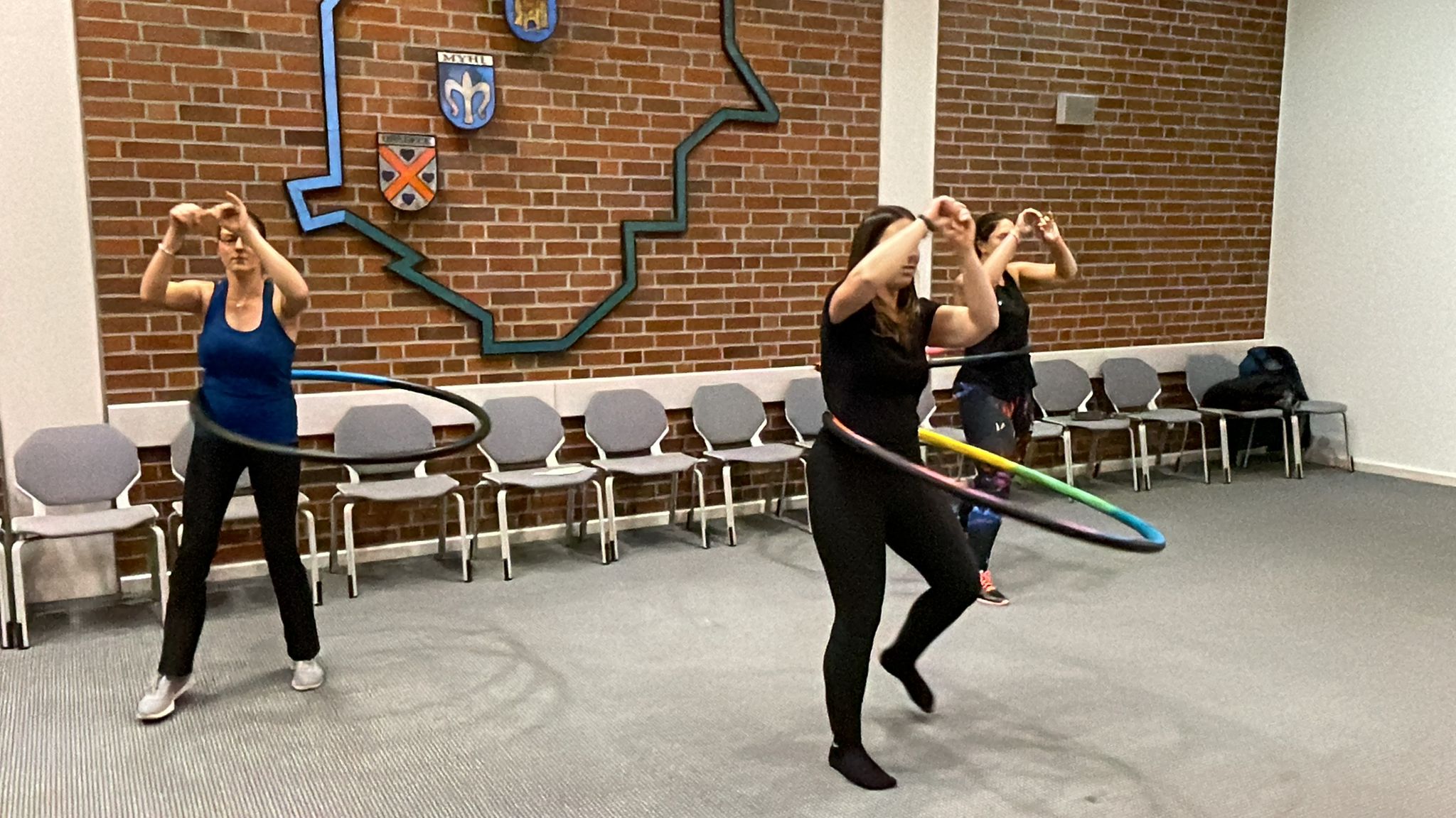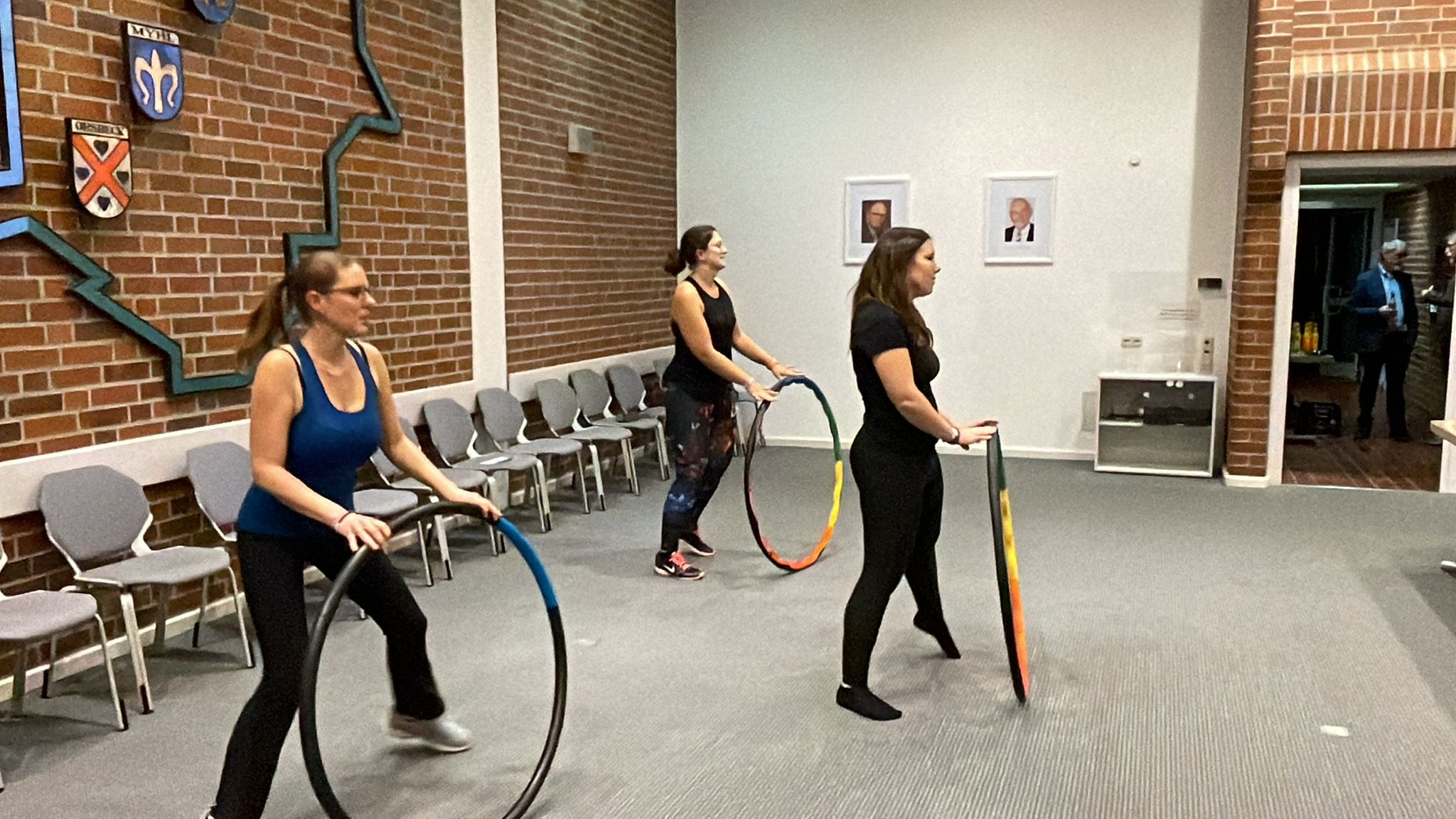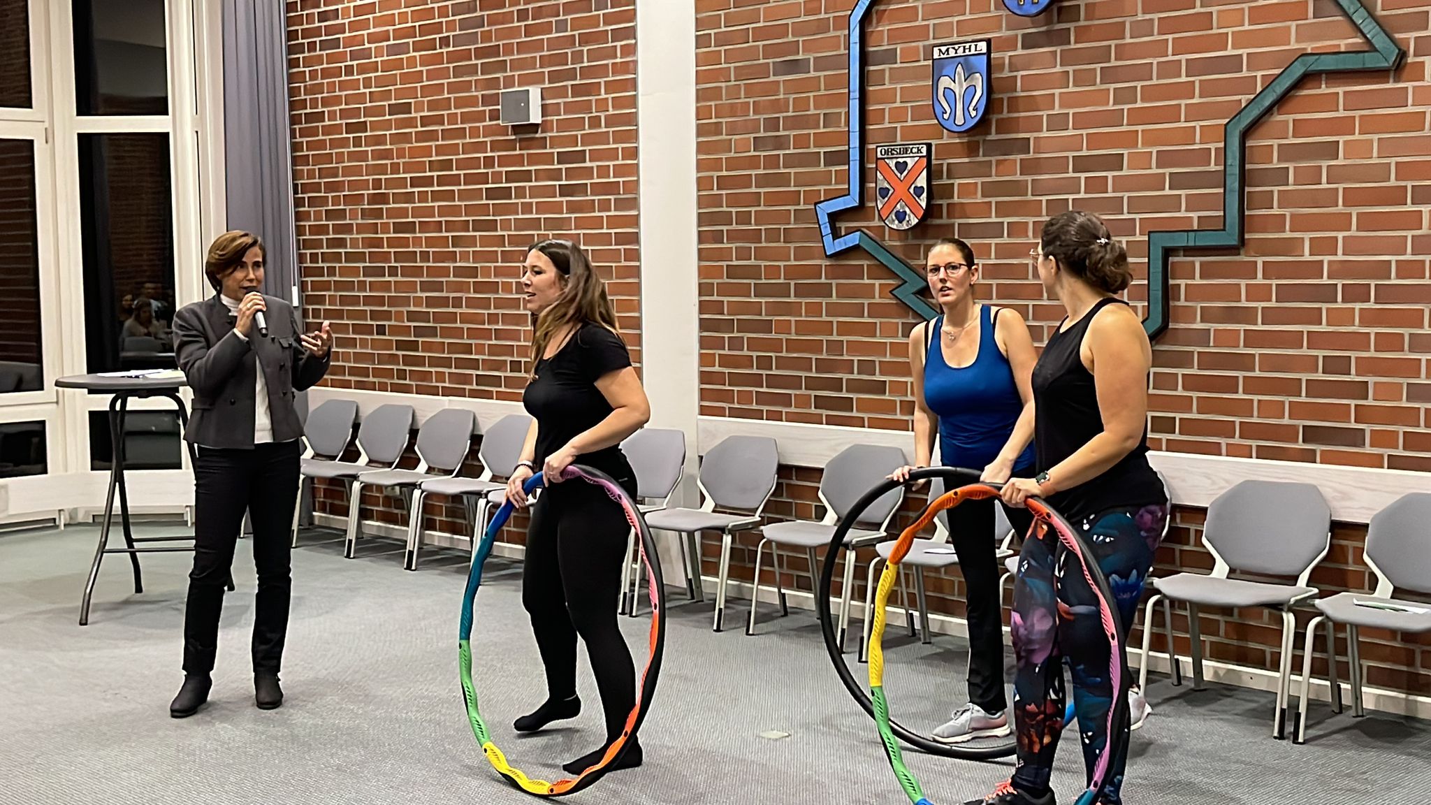 In einer kurzen Vorstellung kamen Mitglieder der Hula Hup Gruppe der DJK in den Ratsaal und überraschten die Gäste samt Bürgermeister mit ihrem „Können“ am Hula Hoop Reifen zu moderner Musik.